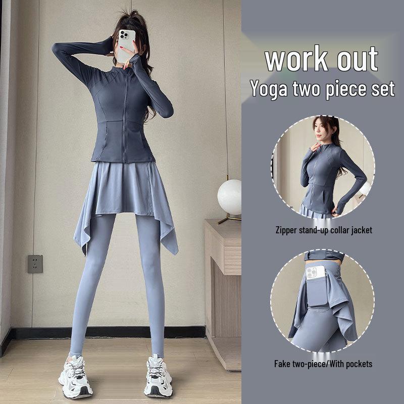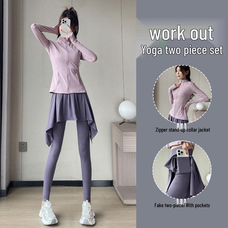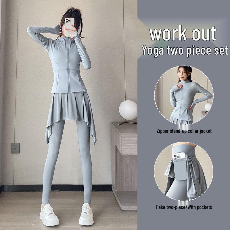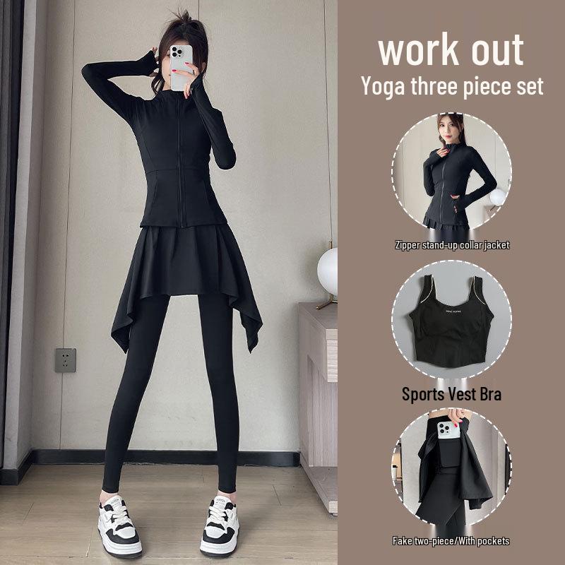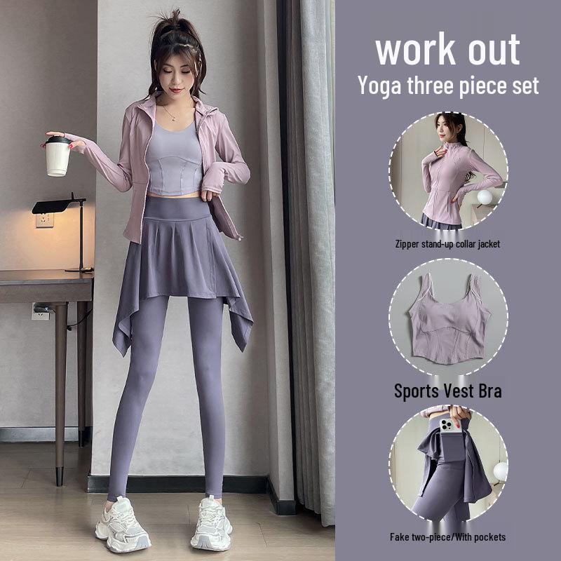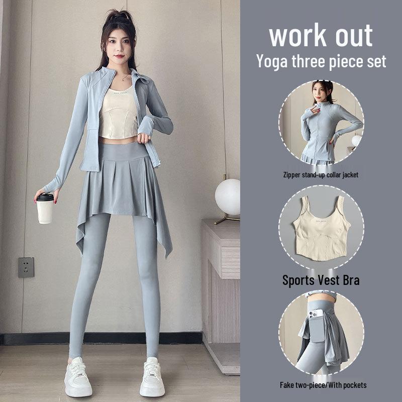 Женский осенний фитнес-комплект высокого класса 2024: Топ для йоги, теннисная юбка и брюки для скалолазания