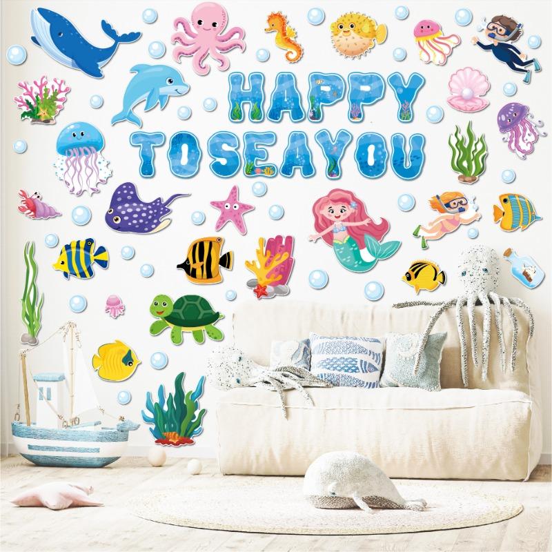 Карточка для украшения доски объявлений с морскими животными, школьный класс, вечеринка, вырезание из бумаги, карточка-украшение «Подводный мир», бумага