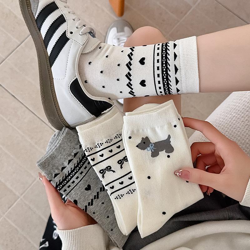 Весенне-летние женские носки до середины икры, впитывающие пот и дышащие, с бантиками и животными узорами, простые и универсальные