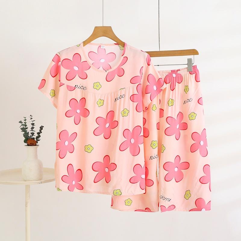 Летний комплект домашней одежды с коротким рукавом, женский тонкий топ с круглым вырезом, шорты, свободная пижама из двух частей — купить товар онлайн с бесплатной доставкой по всему миру!