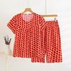 Летний комплект домашней одежды с коротким рукавом, женский тонкий топ с круглым вырезом, шорты, свободная пижама из двух частей