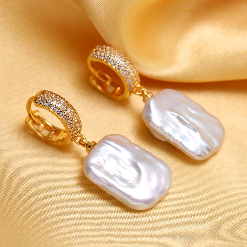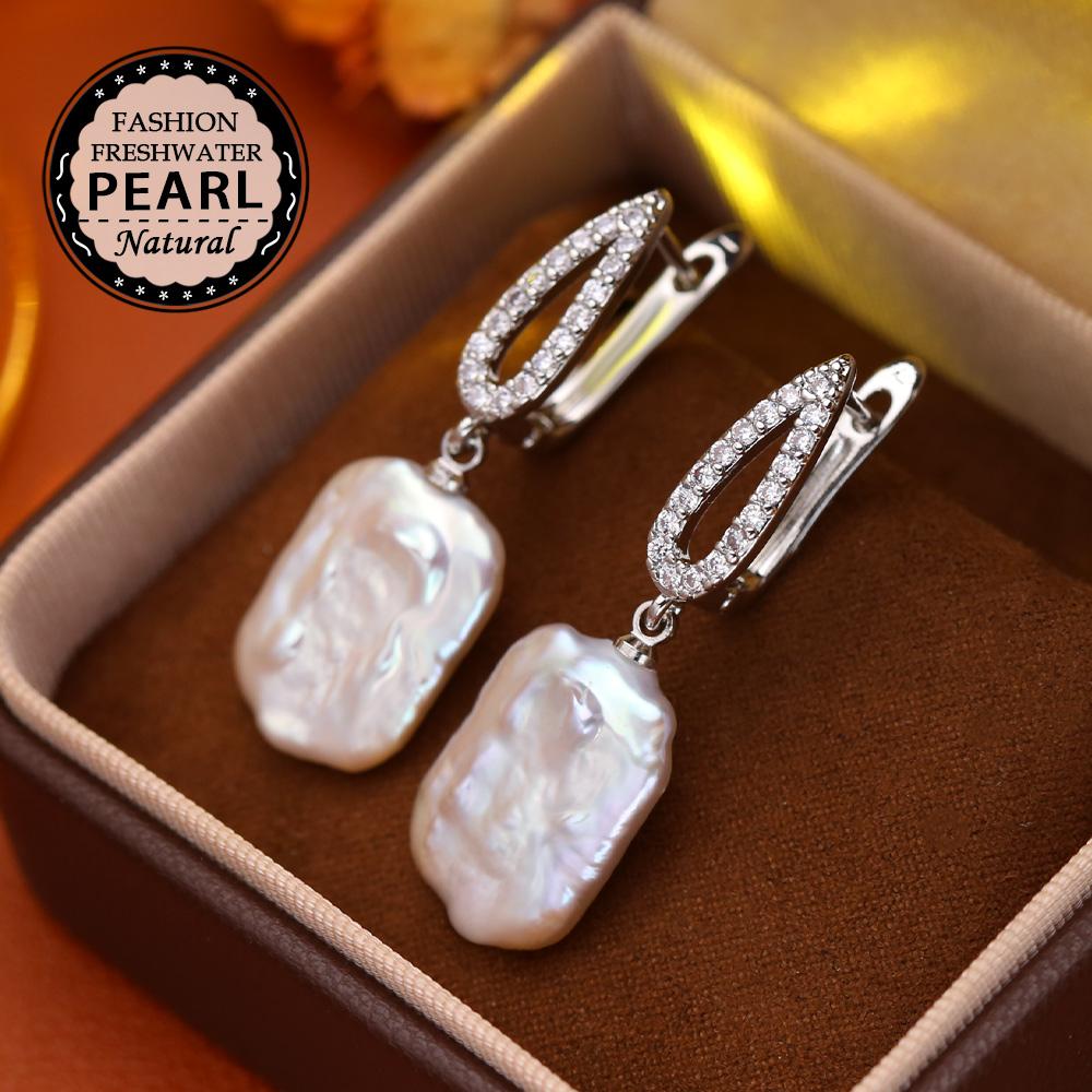 Серьги SENIKO с натуральным пресноводным большим жемчугом в стиле барокко, модные серьги-капли с кубическим цирконием и жемчугом для женщин, вечерние ювелирные изделия