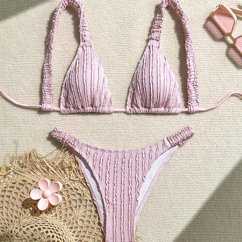 2024 Европейский и американский однотонный сексуальный купальник-бикини женский - Пляжная одежда в стиле Инс — купить товар онлайн с бесплатной доставкой по всему миру!