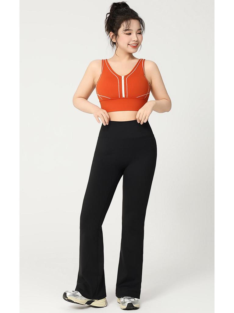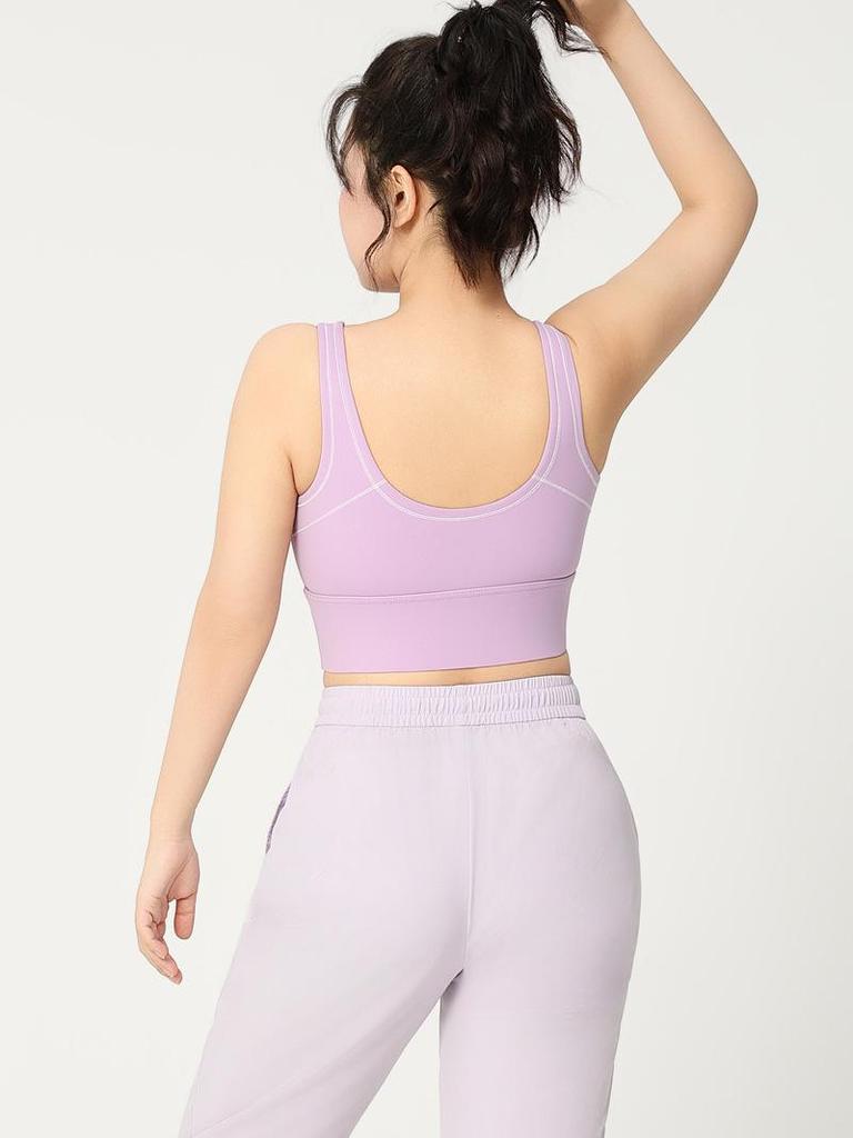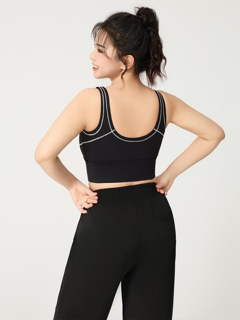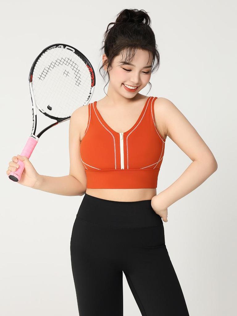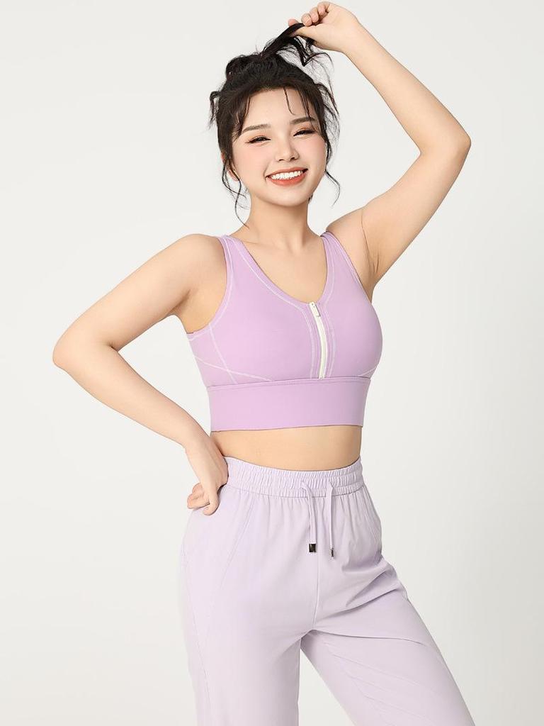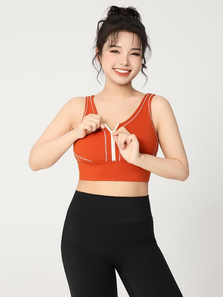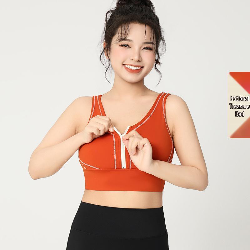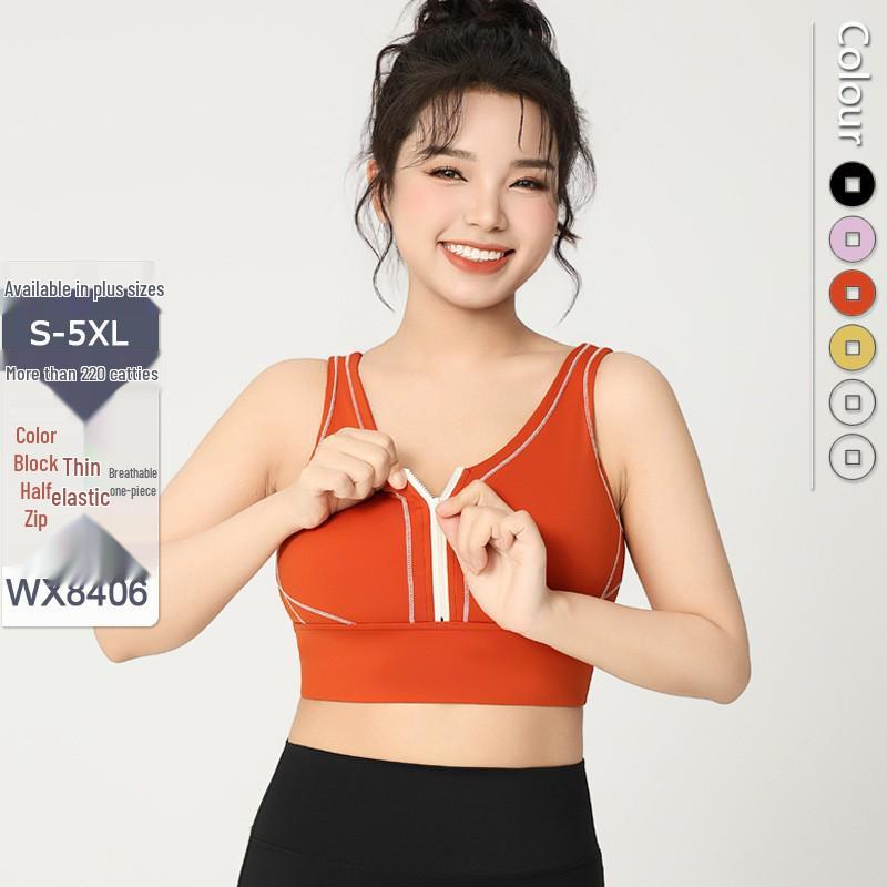 Удлиненный спортивный бюстгальтер для йоги Colorblock на молнии с высокой степенью поддержки – Большой размер Цельный фитнес-бюстгальтер с U-образной спинкой