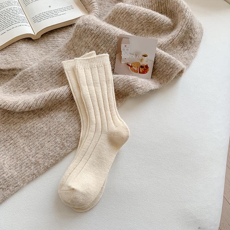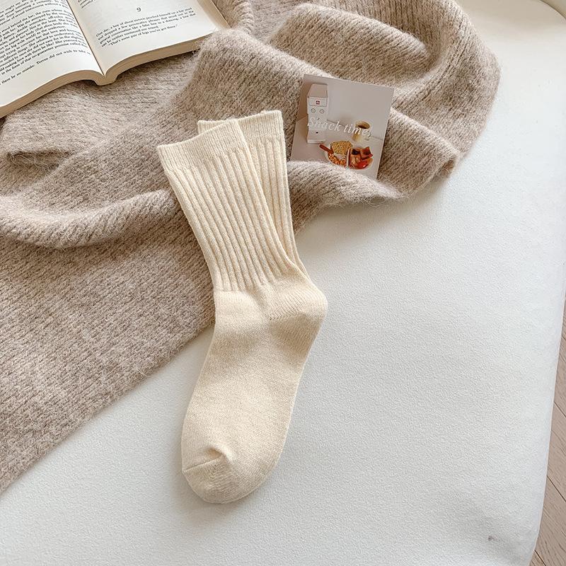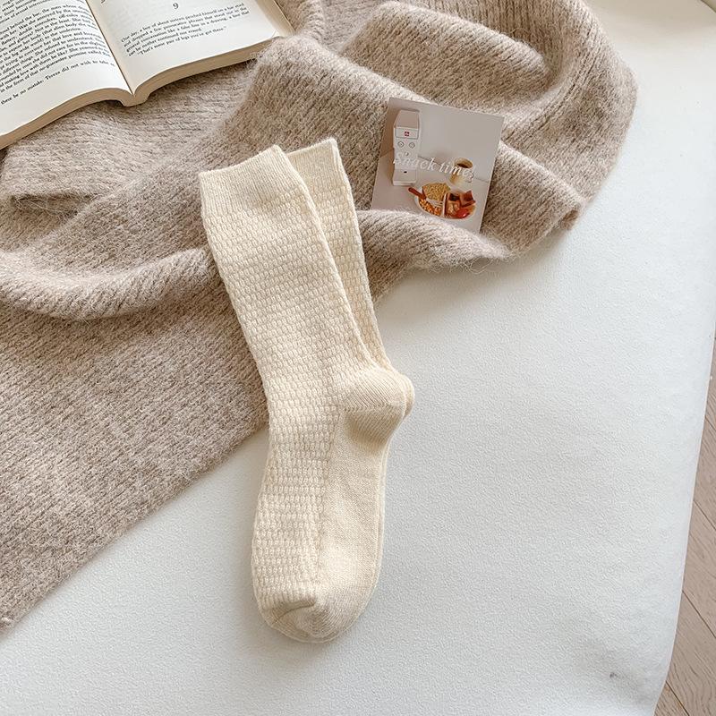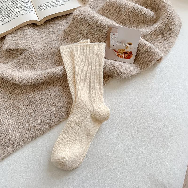 Женские бежевые утолщенные зимние гольфы до середины икры - Теплые, холодостойкие, с широким голенищем, в японском стиле, длинные послеродовые носки