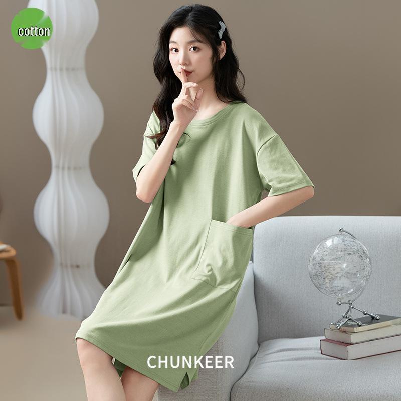 Женская летняя хлопковая свободная повседневная ночная сорочка с коротким рукавом