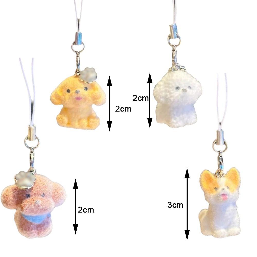 Мини Размер Милый Мультяшный Брелок для Ключей в Виде Собаки Флок Телефонный Шнурок Цепочка для Телефона Брелок