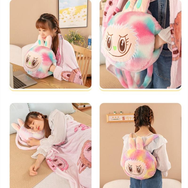 "Лабубу 2-в-1": Подушка днем, одеяло ночью — ваш уютный компаньон, везде."