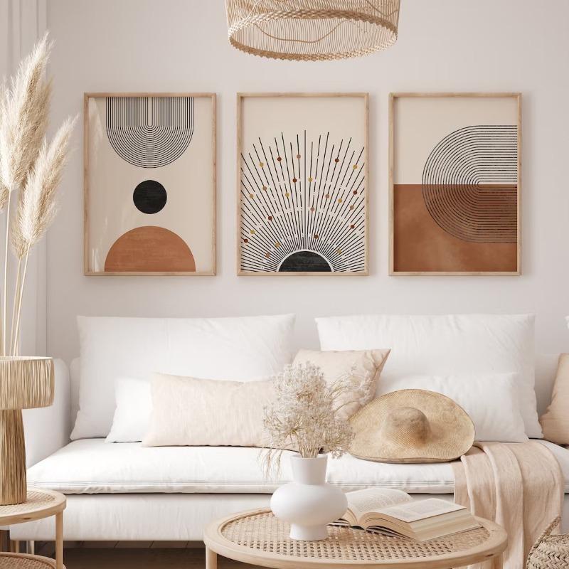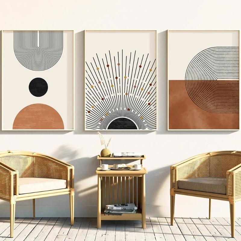 Абстрактный постер Черные Радуги в стиле середины века бохо Современное минималистичное настенное искусство Нейтральный оранжевый геометрический холст Живопись Декор комнаты