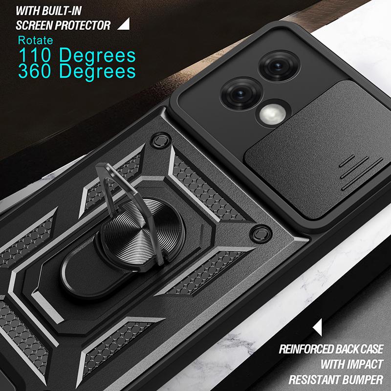 For Motorola Moto G84 5G Case Slide Lens Lid PC+TPU Kickstand Cell Phone Cover