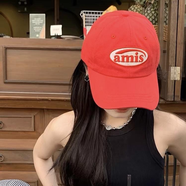 A Red Baseball Cap for Women In South Korea A Versatile Soft Top Big head Cap for Casual Wear In Spring and Summer and A Baseball Cap for Men