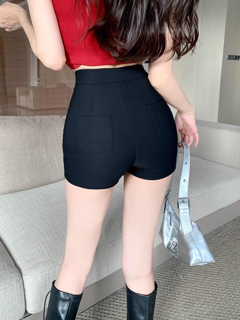 Женские черные летние шорты с высокой талией, утягивающие, 2025
