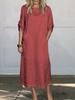 Весенне-летнее женское однотонное платье из хлопка и льна с карманами — купить товар онлайн с бесплатной доставкой до всему миру!