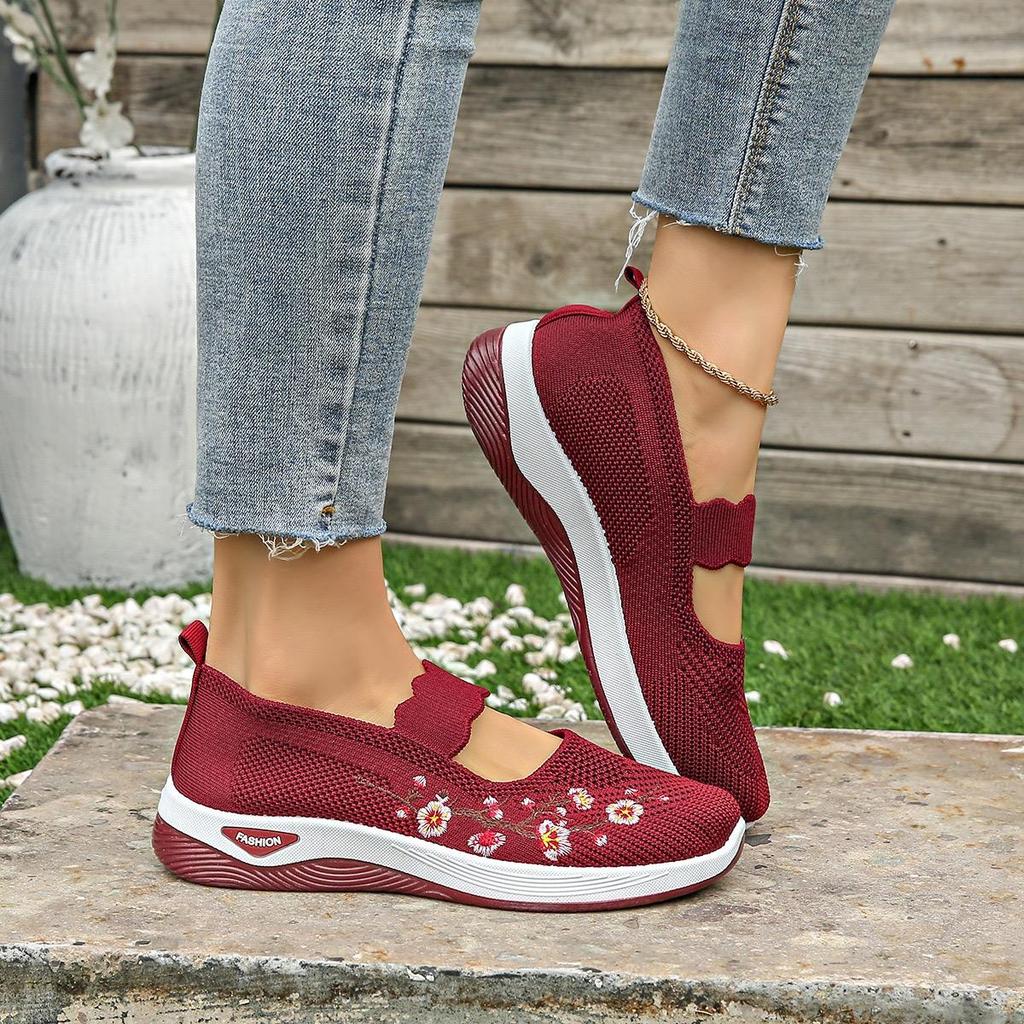 Повседневные женские вышитые лоферы, дышащие кроссовки для ходьбы, мягкие слипоны, женская удобная обувь