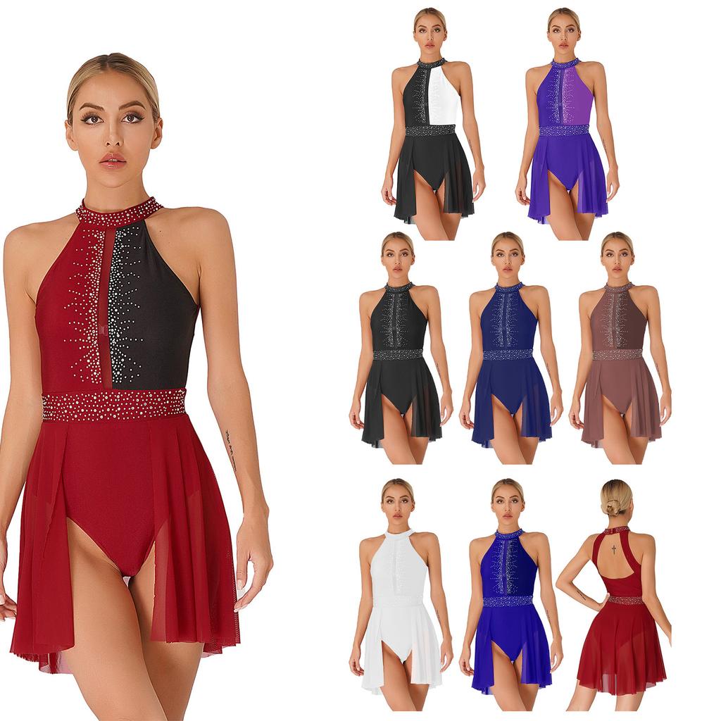 Женский балетный трико без рукавов с блестящими стразами, гимнастический балетный трико с лямкой на шее, лирический танцевальный костюм — купить товар онлайн с бесплатной доставкой по всему миру!