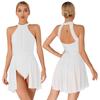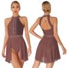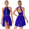 Женский балетный трико без рукавов с блестящими стразами, гимнастический балетный трико с лямкой на шее, лирический танцевальный костюм