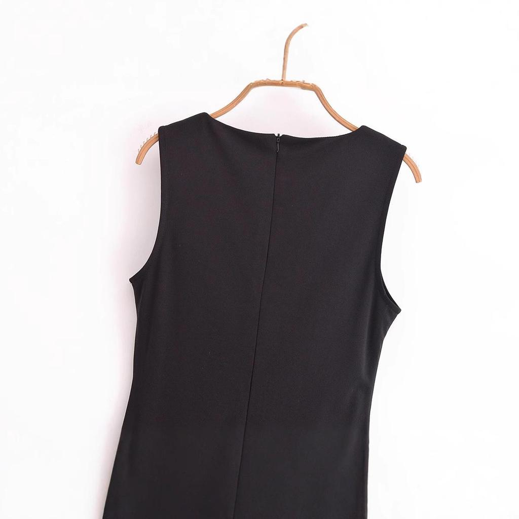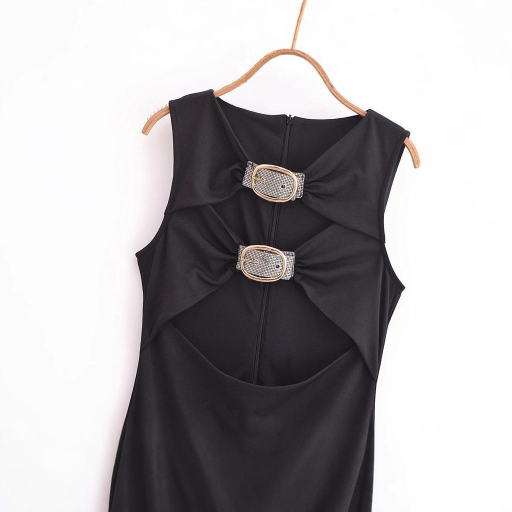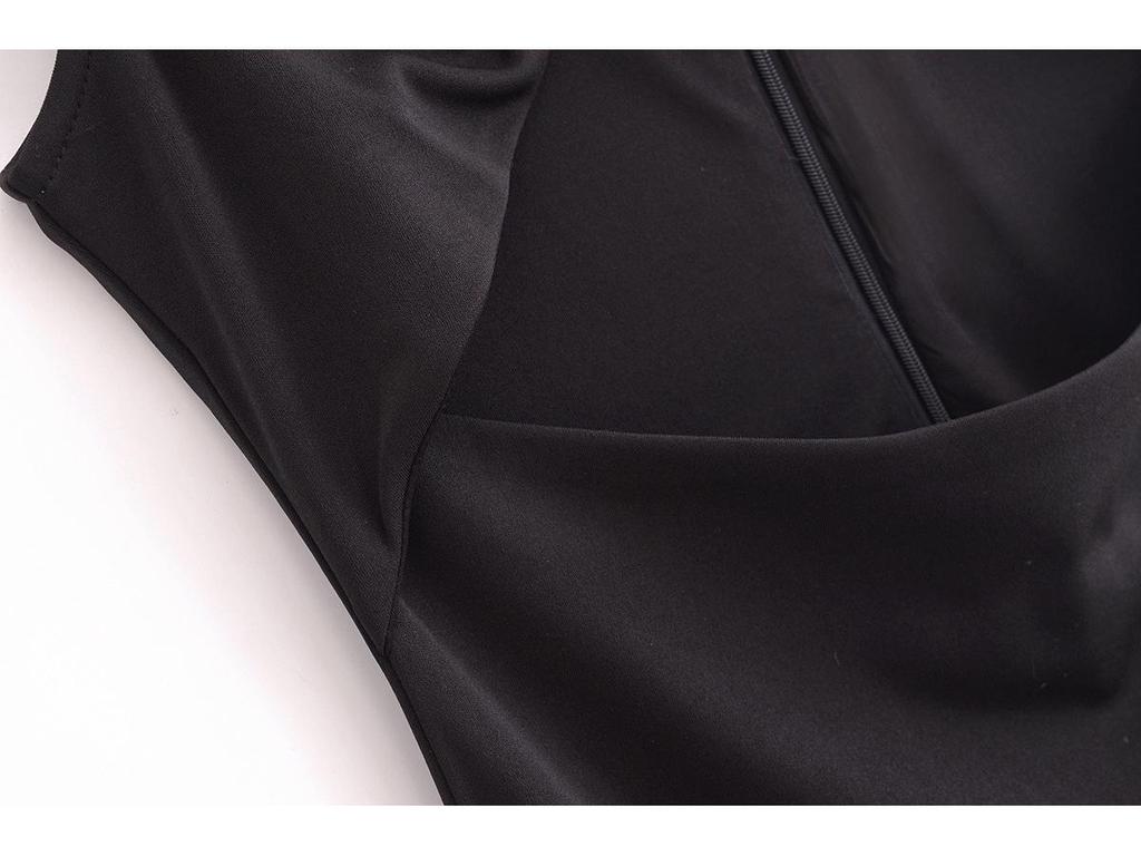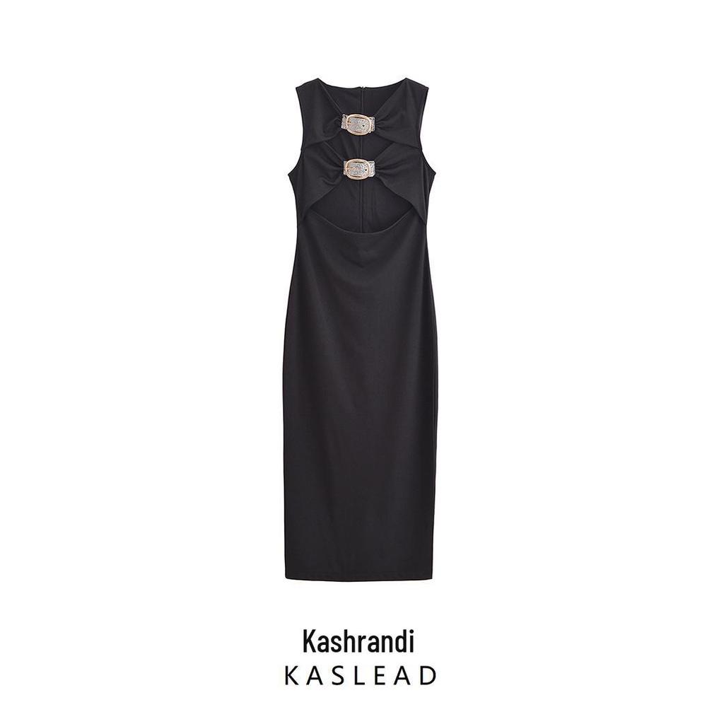 2024 Зимнее женское облегающее длинное платье без рукавов в европейском и американском стиле с вырезами