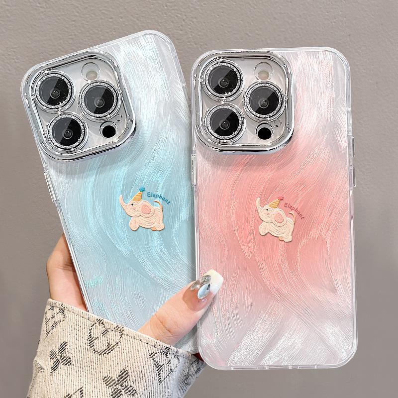 Маслопись Слоны Подходит для Чехла для Мобильного Телефона Apple 16 15promax Перьевая Пряжа 14 Милый 13 Высококлассный 11 Пара 8