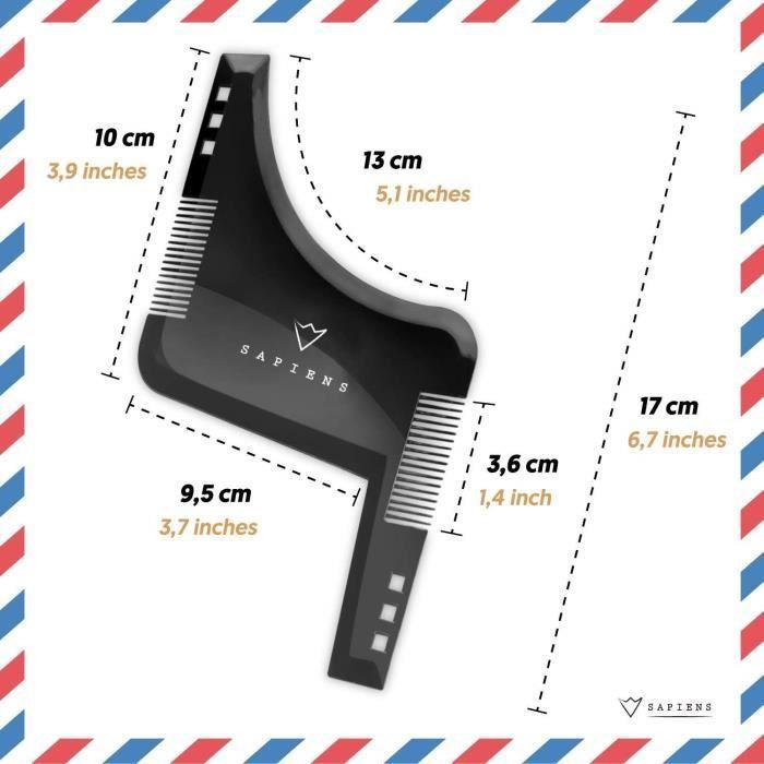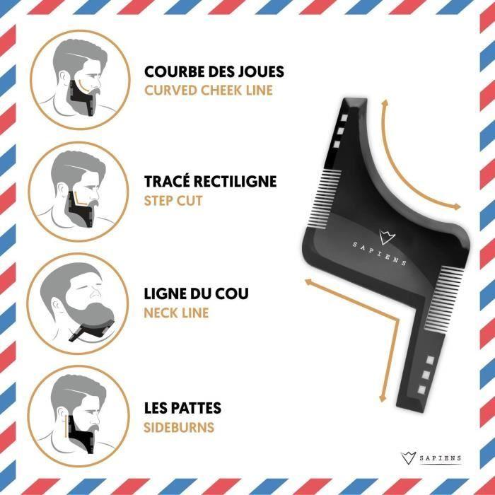 Accessoire de Rasage - SAPIENS - Peigne Pochoir Barbe - Noir - Pour Homme - Guide d'Utilisation