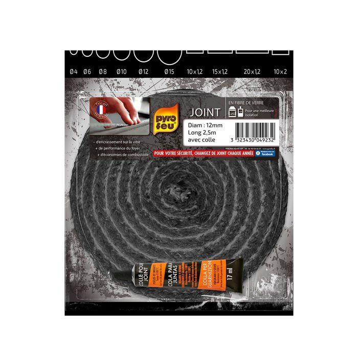 Плетеный уплотнитель - Pyrofeu - 2,5 м - Ø 12 мм - Термостойкость 500°C - Включая огнеупорный клей — купить товар онлайн с бесплатной доставкой по всему миру!