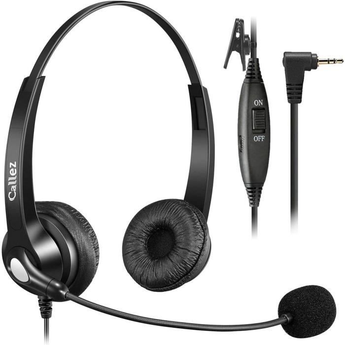 Casque Téléphone Fixe - CALLEZ - Dual 2,5 mm - Micro Anti-Bruit - Sans Fil - Ergonomique