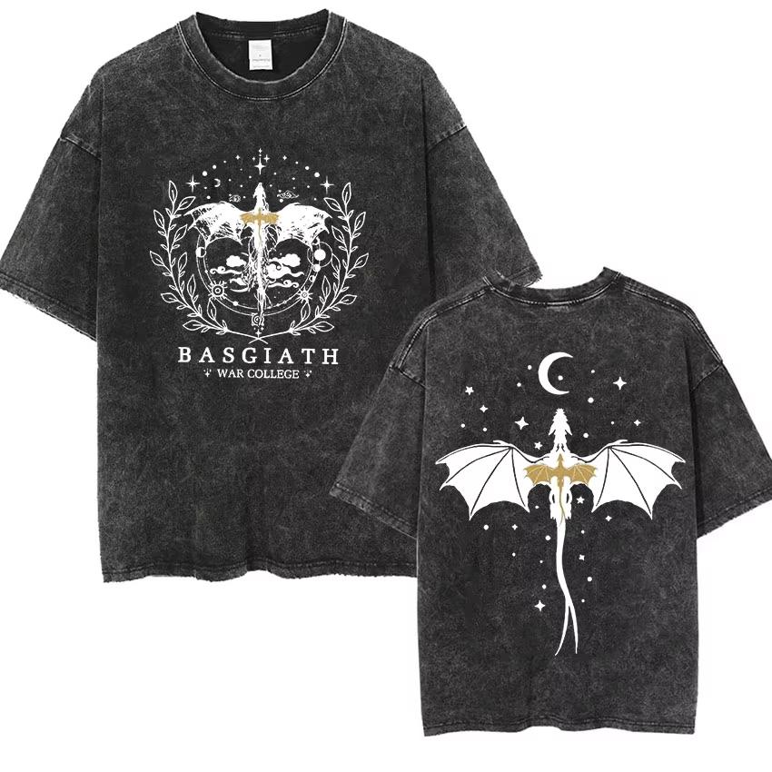 Винтажные футболки Basgiath War College с принтом «Четвертое крыло», «Всадник дракона», футболка с коротким рукавом, мужская футболка оверсайз