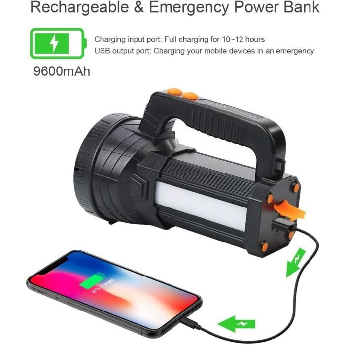 ERAY Светодиодный перезаряжаемый водонепроницаемый фонарь IPX4, 9600 мАч - 11000 люмен с ремнем и зарядным устройством в комплекте 21,4 x 15,6 x 11,2 см