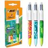 Четырехцветные шариковые ручки Велюр - BIC - Средняя - Упаковка из 3 штук - Декор джунглей - Точное письмо