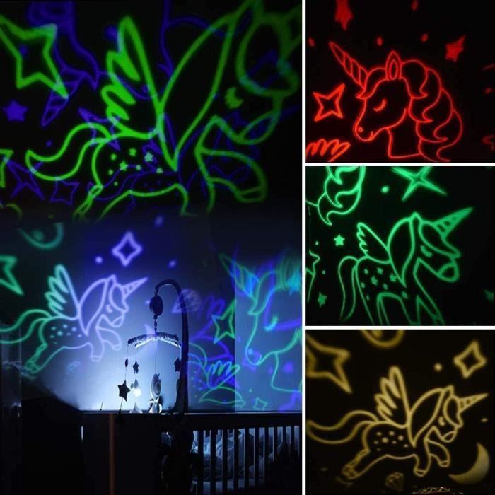 Licorne Veilleuse Projecteur Étoile Rotatif à 360° avec 8 couleur Lumière - DQMOON