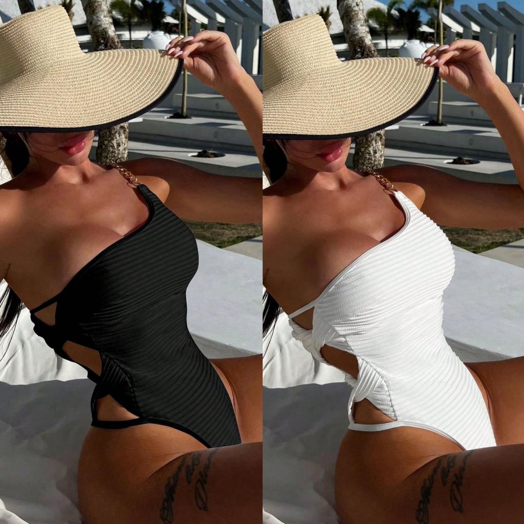 Сексуальный металлический ремешок на одно плечо Слитный купальник с вырезами и завязками Купальник с контролем живота