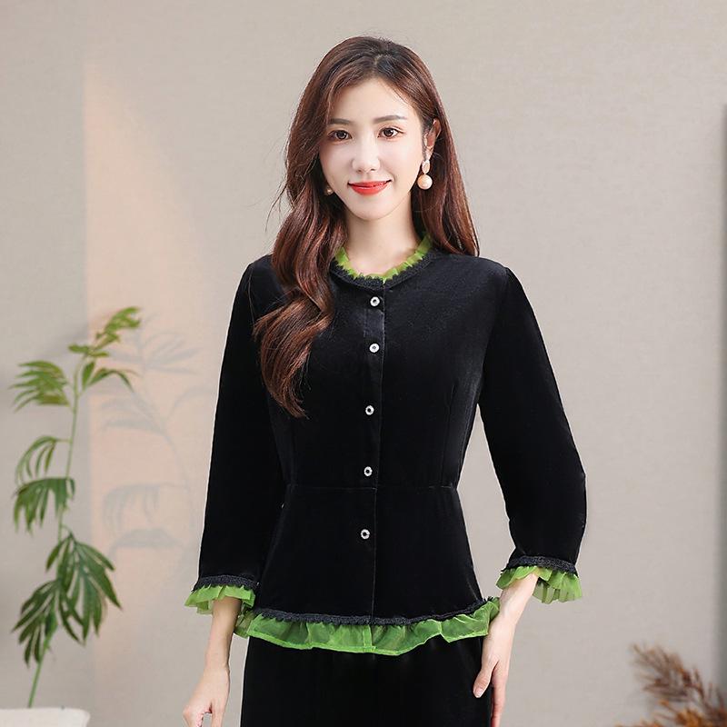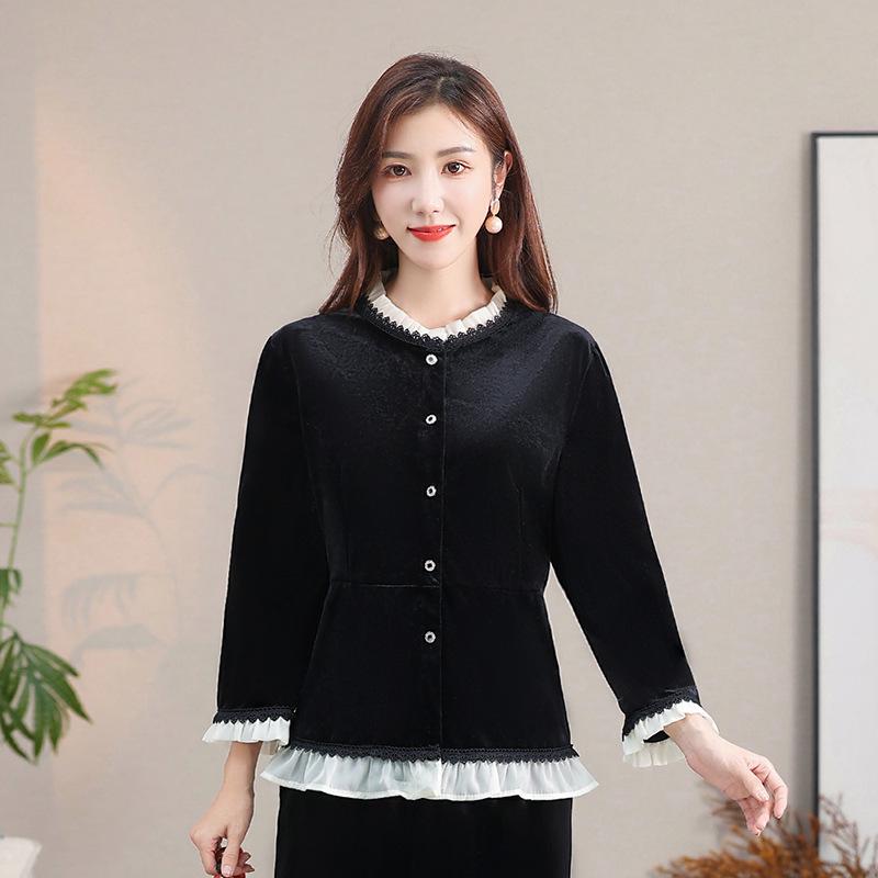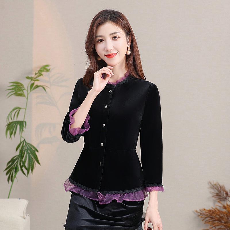 Дополните свой гардероб этой стильной блузкой-кардиганом, выполненной из роскошного золотого бархата для придания элегантности.. Его кружевной воротник добавляет нежную деталь, а смесь спандекса обеспечивает удобную и выгодно подчеркивающую фигуру посадку.. Этот универсальный предмет одежды с изысканным узором в стиле колор-блок идеально подходит для любого случая, органично сочетаясь как с повседневными, так и с формальными нарядами.