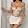 Горячая девушка вышивка строчка перспектива сетка низкий вырез стальное кольцо китовый ус футболка топ K0583