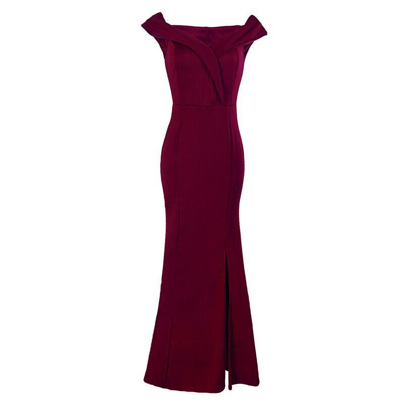Женское европейское и американское вечернее платье с V-образным вырезом и разрезом