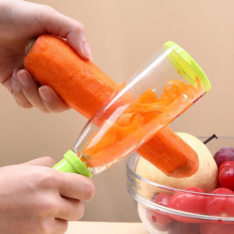 1 шт. Овощечистка с контейнером, Лезвие из нержавеющей стали, Подходит для фруктов и овощей