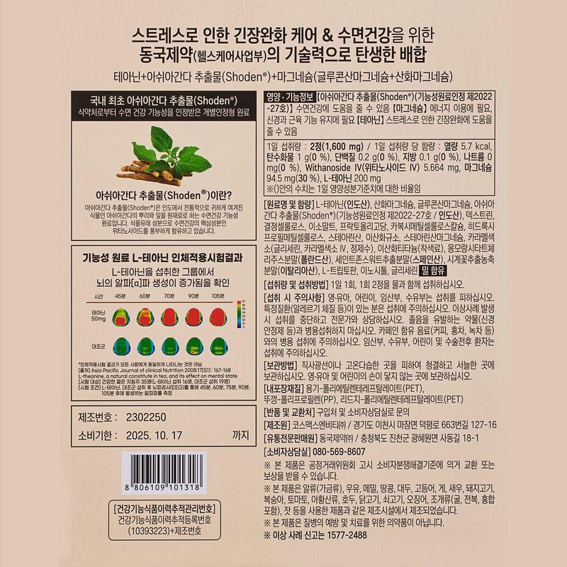 Название и состав ингредиентов: L-теанин (сделано в Индии), оксид магния, глюконат магния, экстракт ашваганды (Шоден®) (функциональное утверждение сырья Нет. 2022-27/сделано в Индии), декстрин, микрокристаллическая целлюлоза, изомальт, фруктоолигосахарид, карбоксиметилцеллюлоза кальция, гидроксипропилметилцеллюлоза, стеариновая кислота, диоксид кремния, стеарат магния, карамельный краситель (глицерин, карамельный колер IV, очищенная вода), оксид титана (краситель), Порошок сока вишни Монморанси (сделано в Польше), улица. Порошок экстракта зверобоя (Из Испании), концентрированный порошок экстракта пассифлоры (из Италии), L-триптофан, инозитол, глицерин