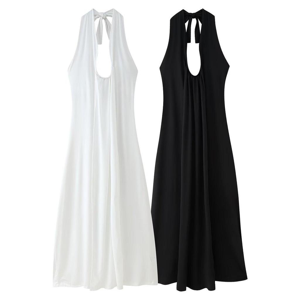 Весна 2025 Женское европейское и американское стиль сексуальное платье-халтер с открытыми плечами