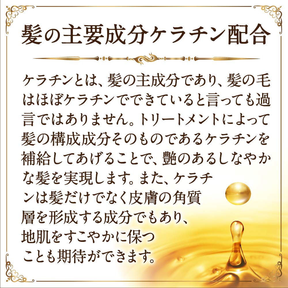 [Кератин, основной компонент волос] Кератин — это общий термин для белков, состоящих из аминокислот, и является основным компонентом волос. Не будет преувеличением сказать, что волосы почти полностью состоят из кератина. Восполняя кератин, компонент, из которого состоят волосы, с помощью процедуры, вы можете добиться блестящих, эластичных волос. Кератин также является компонентом, который формирует не только волосы, но и роговой слой кожи, поэтому можно ожидать, что он также будет поддерживать здоровье кожи головы.