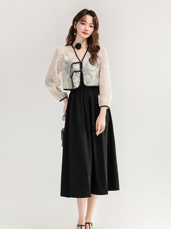 Оцените непринужденный стиль с этим восхитительным комплектом, включающим кружевной топ и платье на бретелях-спагетти. Этот ансамбль, изготовленный из удобного спандекса, сочетает в себе спортивную эстетику с ноткой элегантности.. Идеальный для теплой погоды, воздушный дизайн обеспечивает вам прохладу и стильный вид, будь то на повседневной прогулке или летнем мероприятии.. Изысканная кружевная отделка добавляет женственности, что делает его универсальным выбором для любого случая.