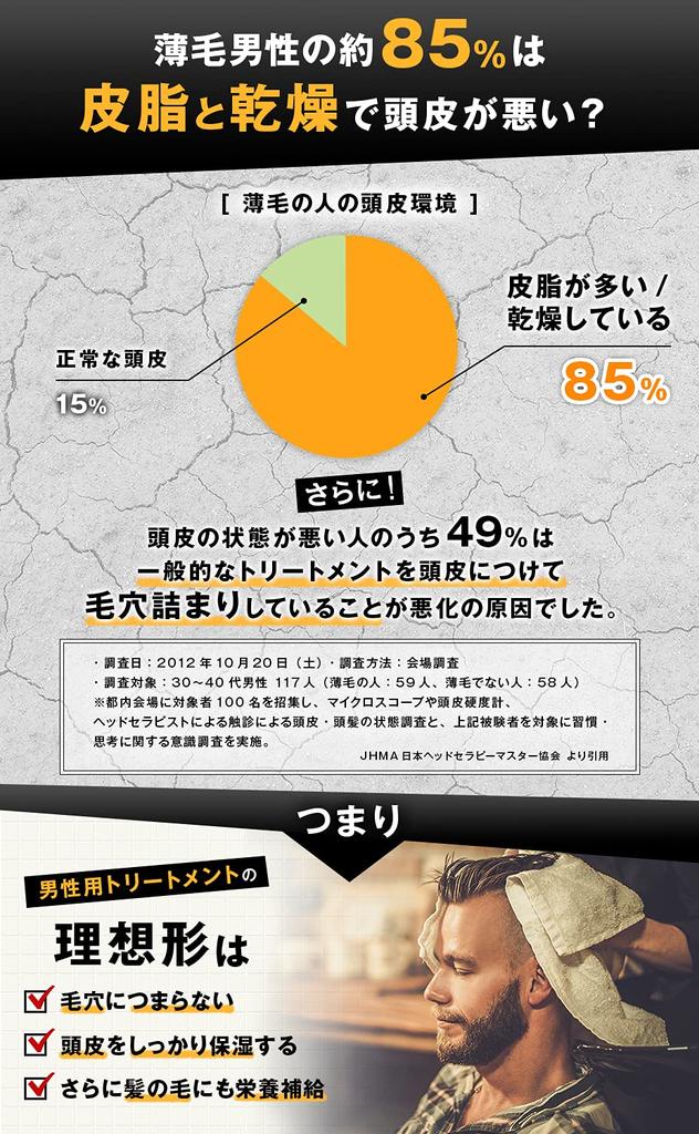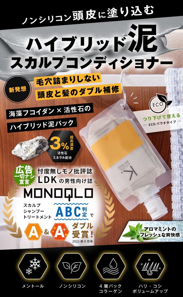 [Treatment for scalp] It is said that general men's conditioners should not be applied to the scalp, but Keftor EX Scalp Conditioner is a conditioner that can be used as a scalp pack and hair pack with seaweed fucoidan and activated stone mud pack that moisturizes the scalp with an additive-free formula that takes the scalp into consideration. By thoroughly moisturizing the scalp after shampooing, it prepares the scalp environment for health and helps the next hair to grow healthily.