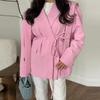 Женский блейзер с лацканами, завязывающимся поясом, пиджак, свободная повседневная и офисная куртка 2025 весна/лето, тонкое пальто с длинным рукавом