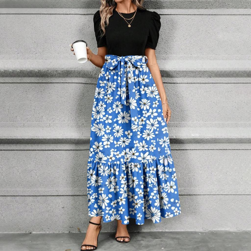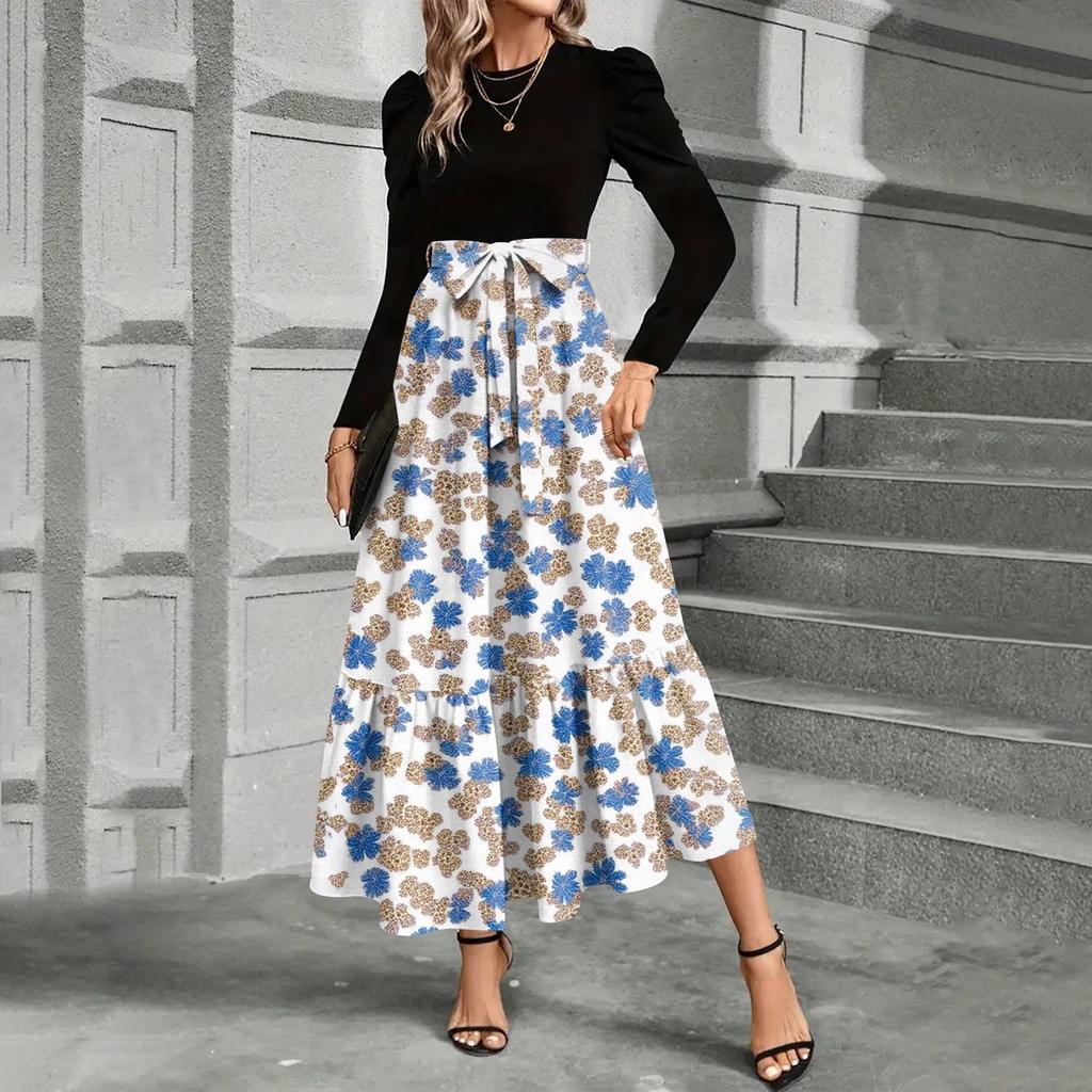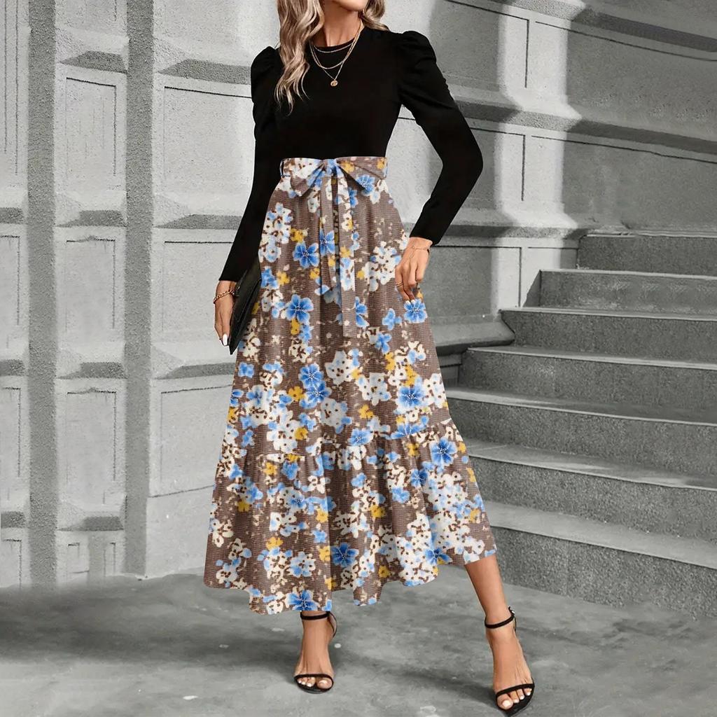 Женское платье с цветочным принтом и высокой талией, модное и элегантное