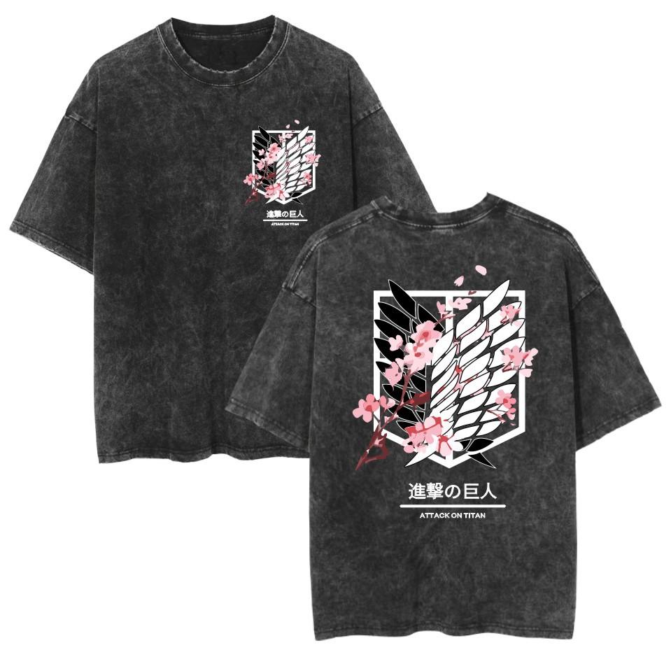Поношенная футболка в стиле ретро АНИМЕ АТАКА ТИТАНОВ повседневная хлопковая летняя футболка с коротким рукавом Мужские и женские футболки