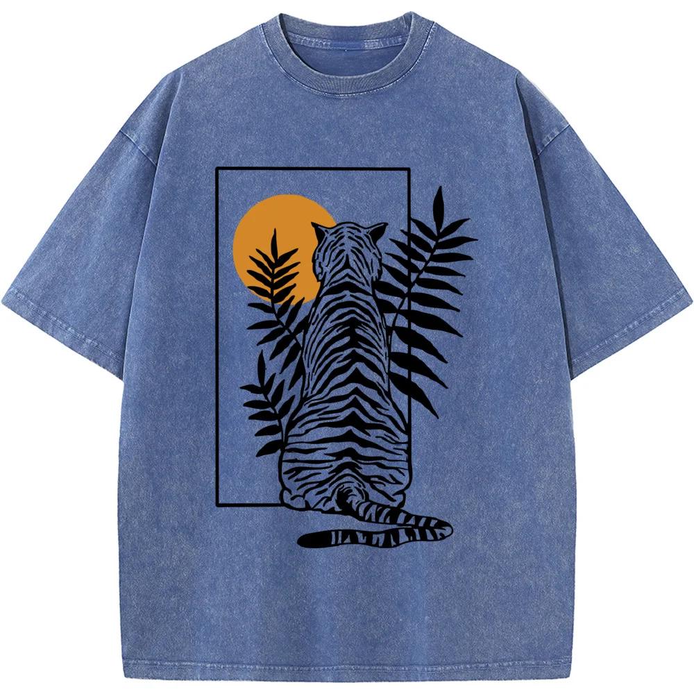Мужская футболка с геометрическим тигром, с коротким рукавом, высококачественная, выстиранная, состаренная, винтажных цветов