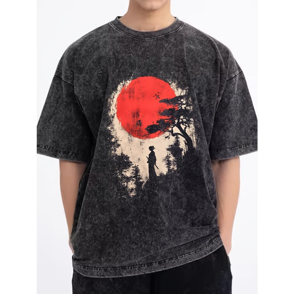 Мужская повседневная футболка с круглым вырезом из хлопка, с короткими рукавами и креативными графическими принтами, из трикотажной ткани свободного плетения