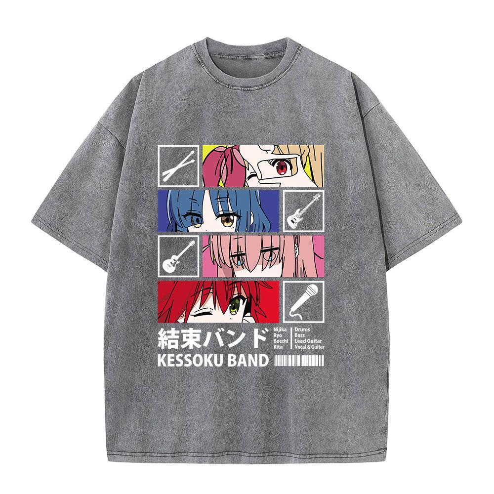 Хлопковые выстиранные футболки Ретро Панк Готика Аниме Принт Гото Хитори Футболки Харадзюку Повседневный Винтажный Топ Футболка с коротким рукавом