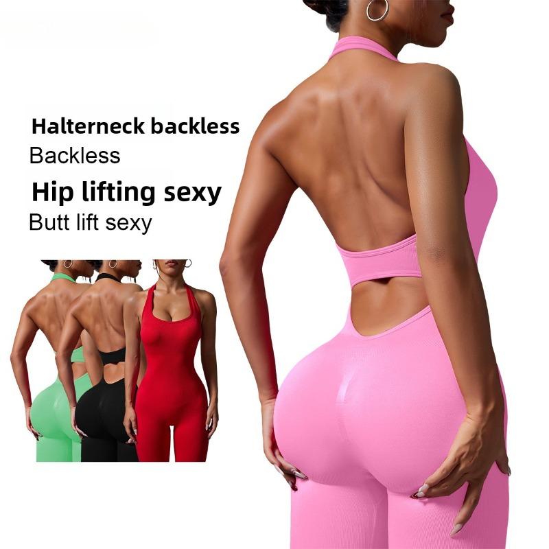 Летний сексуальный комбинезон-халтер с открытой спиной для тренажерного зала, женский фитнес-костюм, спортивный комбинезон для женщины, спортивный костюм, одежда для йоги, эластичный, черный, одежда для тренировок — купить товар онлайн с бесплатной доставкой по всему миру!