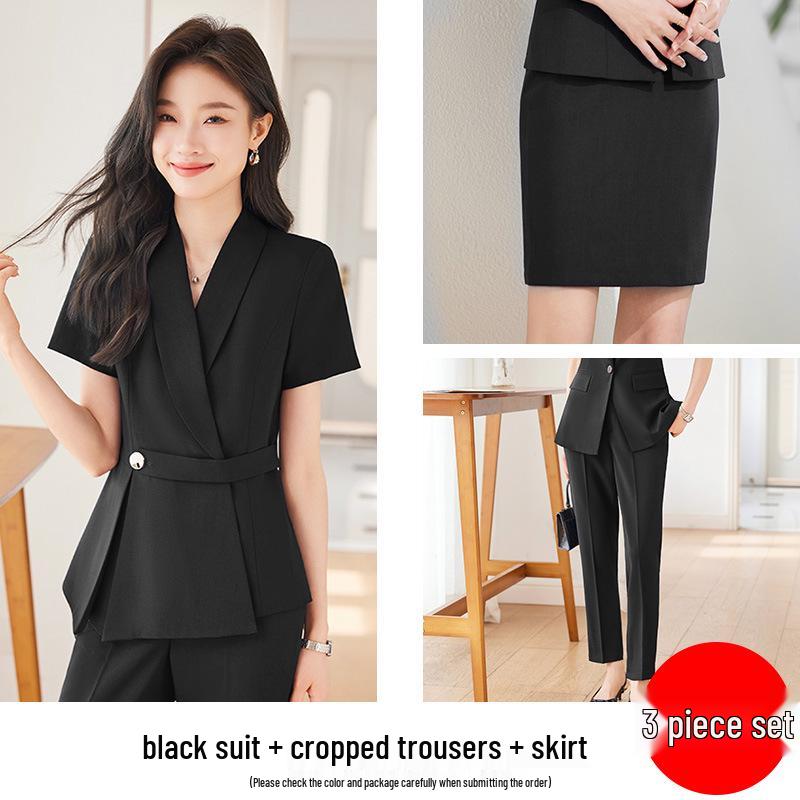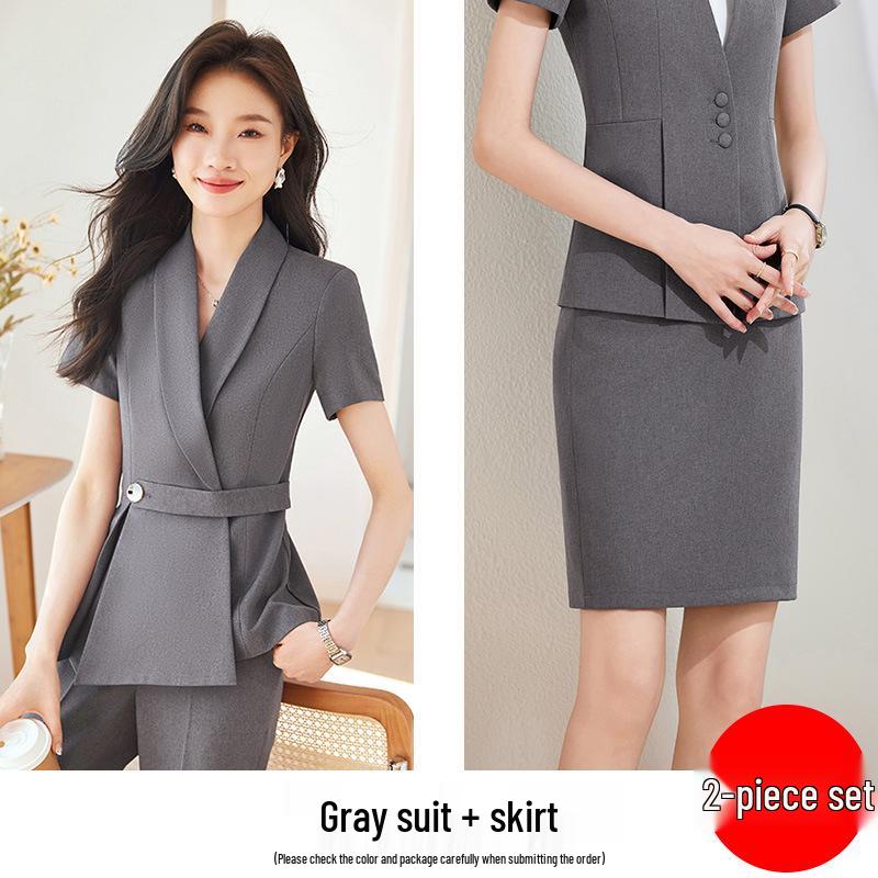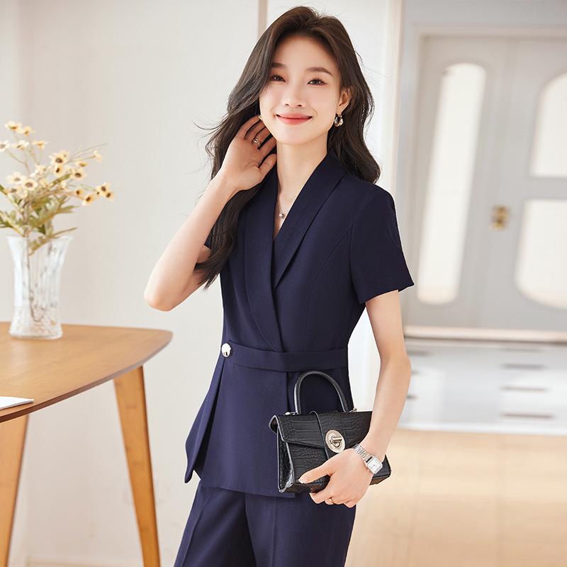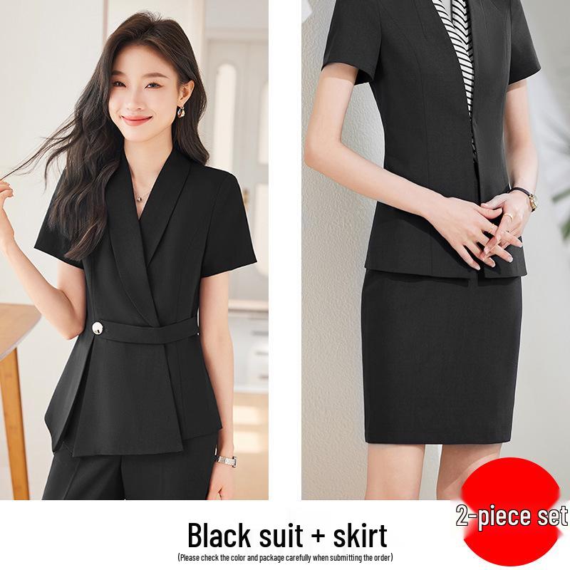 Этот женский летний профессиональный костюмный набор изготовлен из высококачественного полиэстера, обеспечивающего удобную и дышащую посадку, идеально подходящую для теплой погоды.. Этот костюмный комплект, разработанный с элегантностью и профессионализмом, идеально подходит для сотрудников ресепшена в отелях, а также для работников ювелирных магазинов и салонов красоты.. Гладкий дизайн обеспечивает изысканный внешний вид, делая его универсальным дополнением к любому профессиональному гардеробу.