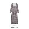 2024 Осень Женское Платье в Европейском и Американском Стиле, Приталенное, из Шелковой Сетки с Принтом