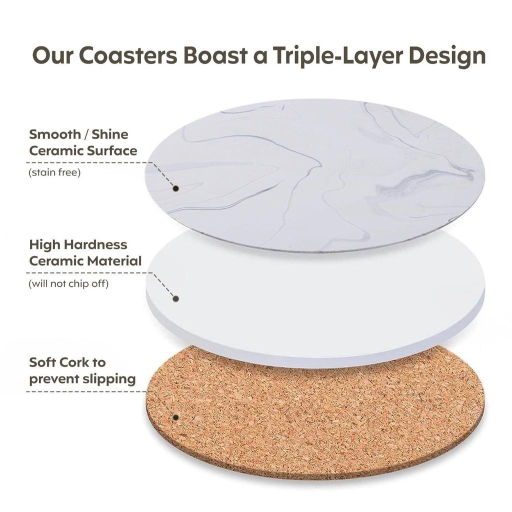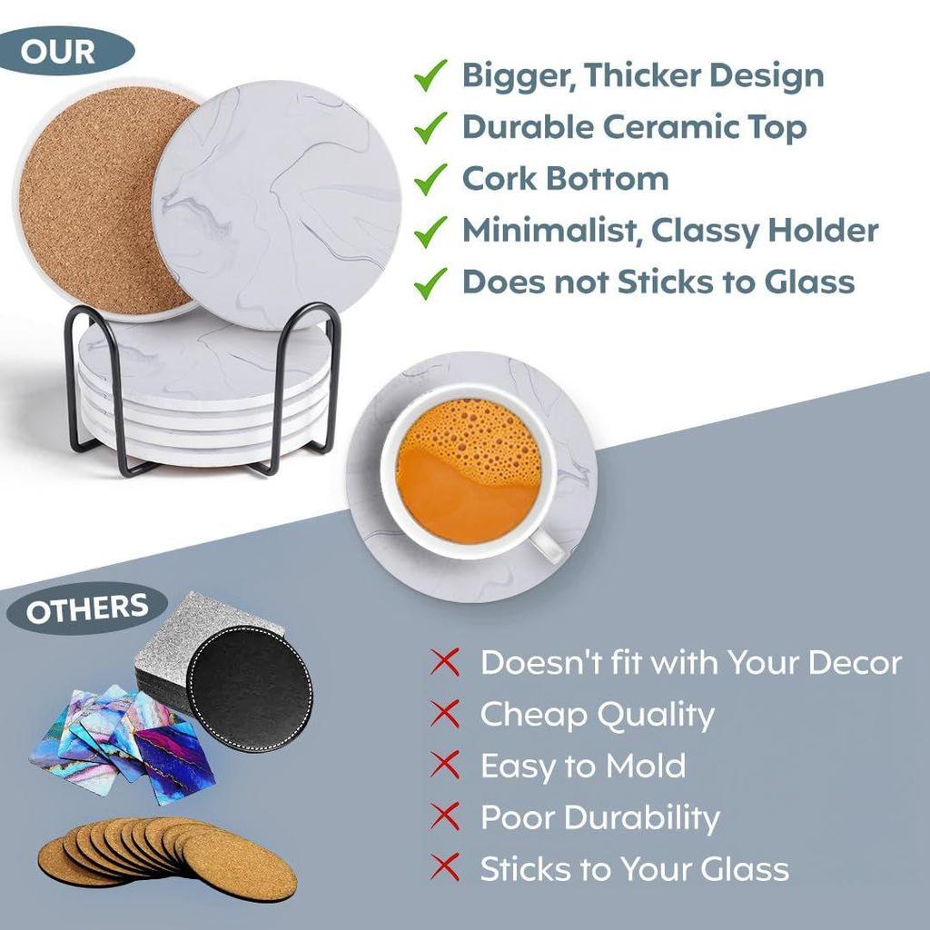 Керамические подставки с матовым покрытием сверху и пробковой основой | Подставки для чашек Набор из 6 штук | Керамическая подставка в стиле мрамора для чая, кофейного столика и обеденного стола