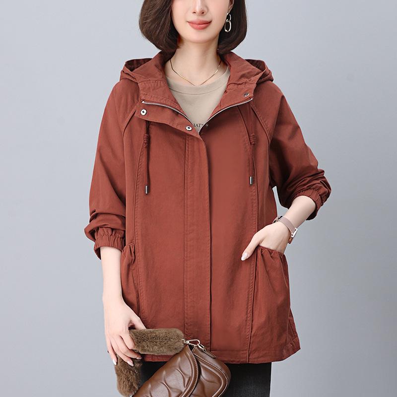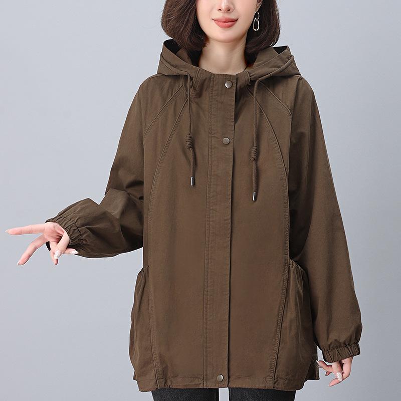 Женский демисезонный тренч средней длины 2024 - Большой размер, Свободный крой, Элегантный хлопок для мам